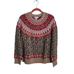 Charter Club Leopard Red Gold Fairisle Cotton Blend Pullover Sweater Size L