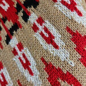 This Charter Club pullover sweater features a striking leopard and Fairisle design in red and gold tones. Made from a comfortable cotton blend, it is perfect for casual outings or cozy days indoors. Size L ensures a relaxed fit.
