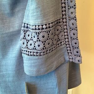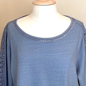 Charter Club Light Blue 100% Cotton Scoop Neck Crochet Trim Long Sleeve Coastal Top is a soft fabric.