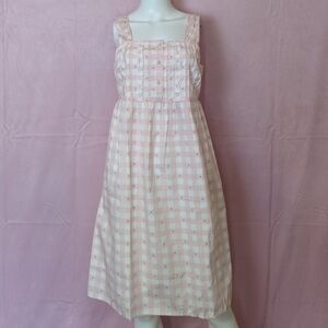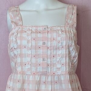 Charter Club Light Pink Gingham and Hearts Print Barbie Midi Nightdress Medium