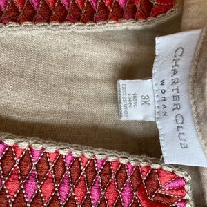 Charter Club Natural Linen 3X Tunic, embroidered with Pink toned accents around the collar and sleeves