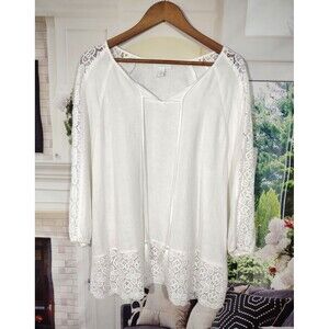 Charter Club Linen Size Large Top Boho Crochet Renaissance Festival Womens