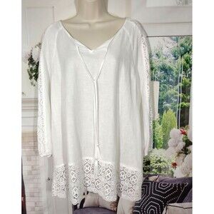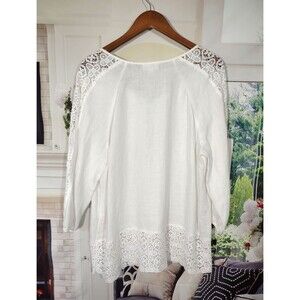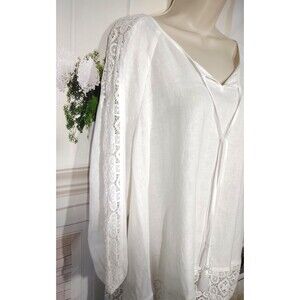 Charter Club 100% Linen Boho Top Peasant Renaissance Crochet Womens Tunic Hippie