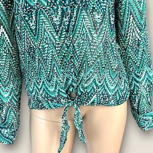 Charter Club Long Sleeves Button Up Sheer Chiffon Top Blouse Size M Green