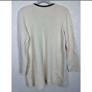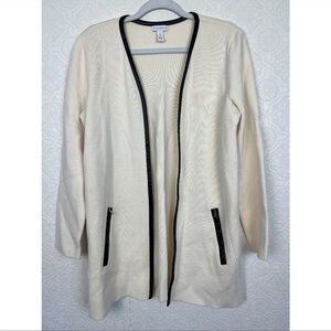 Charter Club Longline Cardigan Jacket Cream Sweater Black Faux Leather Piping