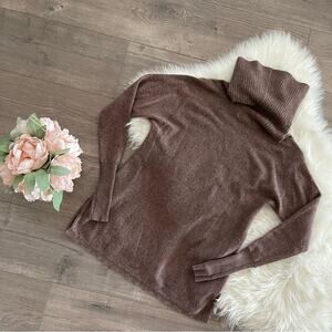 Brown 100% Lusso Cashmere cowlneck sweater.