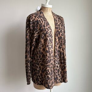 Charter Club Luxury 100% Cashmere Leopard Print Open Cardigan Sweater XL