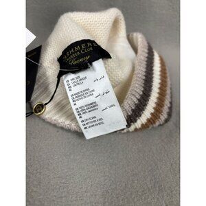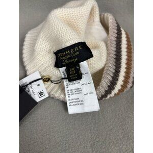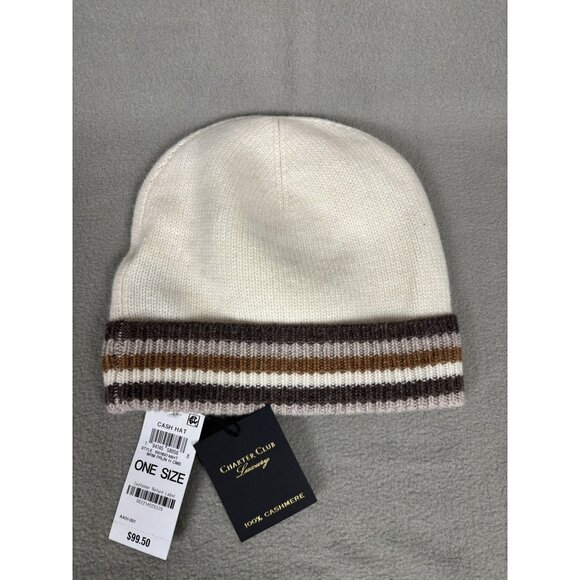 Charter Club Luxury 100% Cashmere White Beanie Hat With Striped Cuff OS NWT's