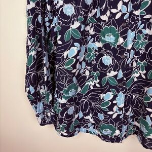 Charter Club Luxury 100% Linen Blue Green Floral Button Down Shirt