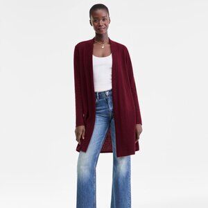 Charter Club Luxury Burgundy 100% Cashmere Open Front Split Hem Duster Cardigan