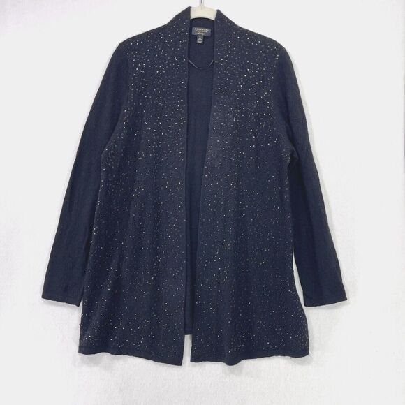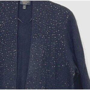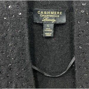 Charter Club Luxury Cardigan Women L Black 100% Cashmere Sequins Long Open Soft