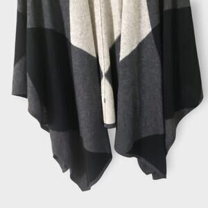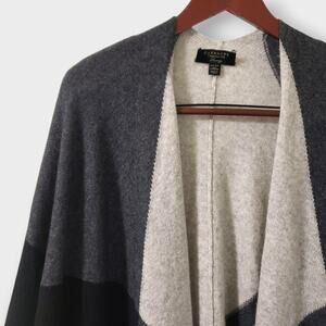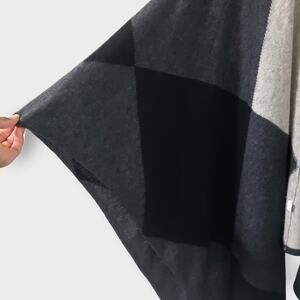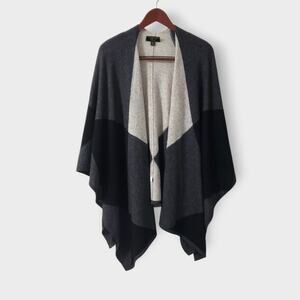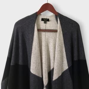 Charter Club Luxury Cashmere Colorblock Poncho Wrap Black Grey One Size Neutral
