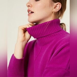 Charter Club Luxury Cashmere Oversized Turtleneck Sweater Magenta Purple Size Large Ultra soft and warm Charter Club Luxury sweater features 100% cashmere fabric, cozy turtleneck, long sleeves, and ribbed hems. Statement color gives added feminine style to this winter staple. APPROXIMATE MEASUREMENTS armpit to armpit - 24 in length - 28 in