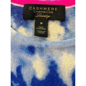 Charter Club Luxury Cashmere Sweater Blue White Tie-Dye Womens Size S