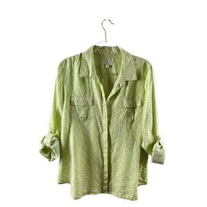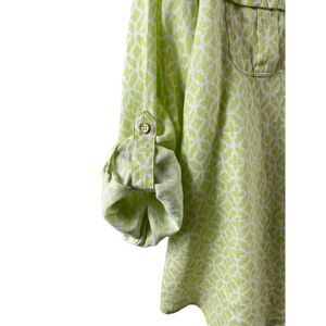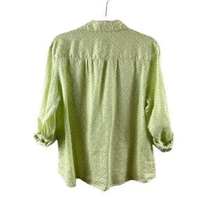 Charter Club Luxury Linen Lime Green Medallion Tile Print Button Up Blouse XL