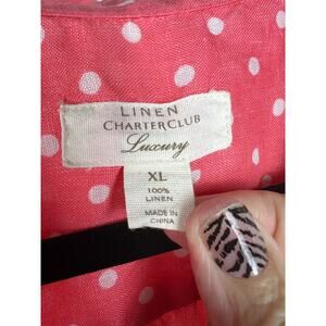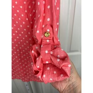 Charter Club Luxury Linen Pink Polka Dot Women's Top Shirt Roll Top Sleeves XL