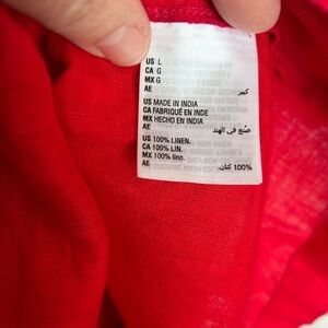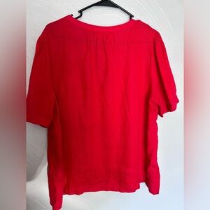 Charter Club Luxury Red 100% Linen Women's Blouse Tie Sleeve V-Neck