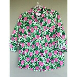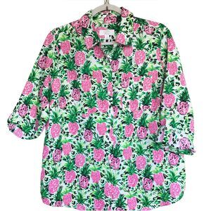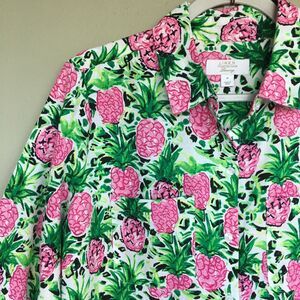 Charter Club Luxury Shirt M Linen Button Up Top Pineapple Print Casual Tropical