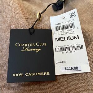 Charter Club Luxury V Neck Heather Camel Sweater M