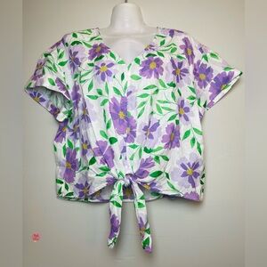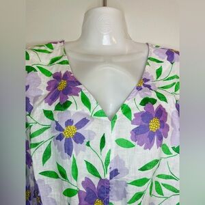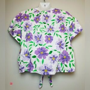 Charter Club Luxury Women's 100% Linen Blouse Floral Tie Boxy Top Front Size PXL