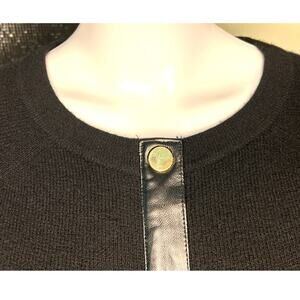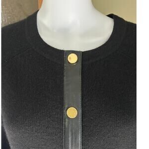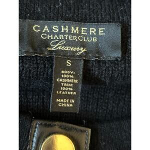 Charter Club Macy's Luxury Cashmere Leather Cardigan Sweater Black Gold Sz Small