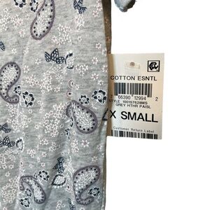 Charter Club Macy's Short Sleeve Cotton Essentials Chemise Grey Paisley XS New