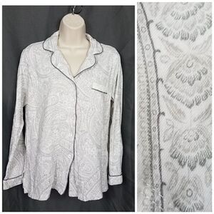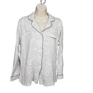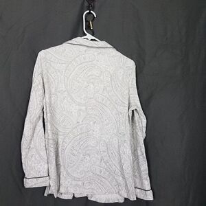 Charter Club Medium Pajama Button Down Top Cotton White Gray Paisley M Top Only