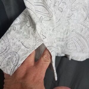 This was a Macy's returns, but no tags on this one, I don't see any wear on this , excellent condition Charter Club Medium Pajama Button Down Top Cotton Pocket White Gray Paisley M Pocket at left chest Side vents slits Top Only Pit to pit 21 length 24 BAG - B15 sleepwear, pajamas , PJ, loungewear, comfort, sleeping, weekend pj's,
