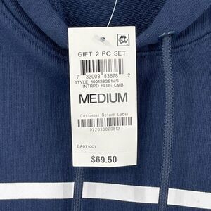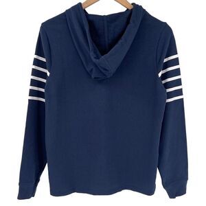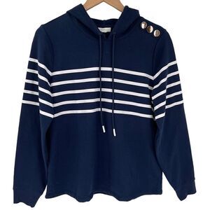 Charter Club Nautical Stripe Hoodie Sweatshirt Button Detail Women Medium Blue