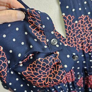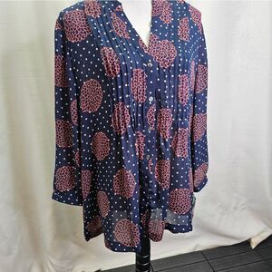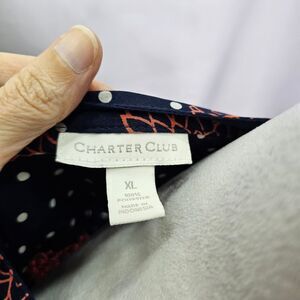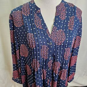 Charter Club Navy Blue Floral Pintuck Button Down Blouse Size XL