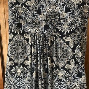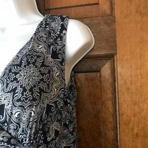 Charter Club; Maxi Dress; Petite Medium; Navy Blue with White & Light Blue Paisley; Sleeveless; Surplice Top; Banded Waistline; 95% Rayon & 5% Spandex; Machine Wash & Tumble Dry; Armpit to Armpit 18"; Armpit to Hem 43"; Length 48"