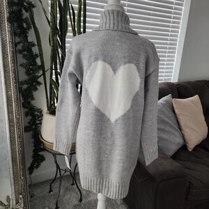 Charter Club Open Front Cardigan Sweater with front pockets and Heart print on the back. Size Large. New.