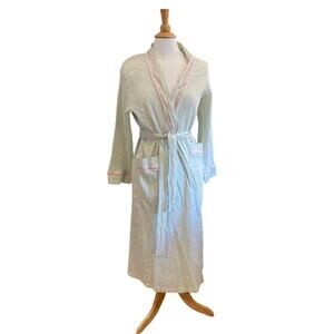 Charter Club PJ Set Pastel Green Striped Robe, PJ Pants, Pink Floral Trim, M