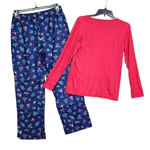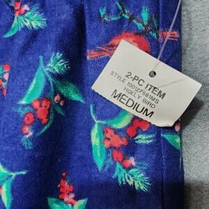 Charter Club Pajama Set Long Sleeve V Neck Top Flannel Bottoms Holly Bird Medium