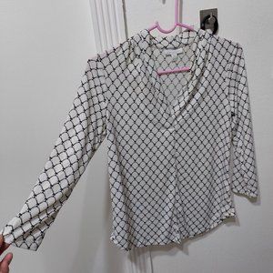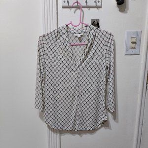 Subtle pleats effortlessly frame the flattering V-neckline of this petite printed top from Charter Club with 3/4-sleeves.