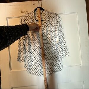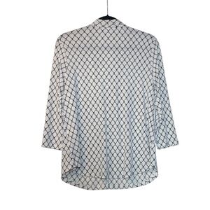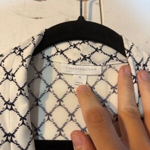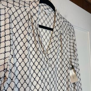 Charter Club Petite Lattice V-Neck Top Pleated White & Black Sz Petite Large NWT