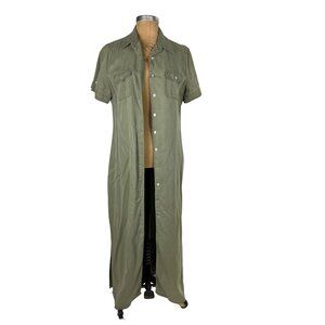 Charter Club Petite Long Button Down Dress Muted Sage Green 100% Lyocell