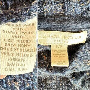 Charter Club Petite Marled Blue with Pink Undertones Button Cardigan Sweater Sma