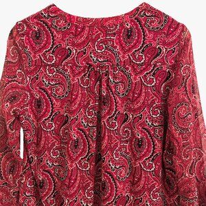 Charter Club Petite Medium PM Blouse Pintuck Paisley 3/4 Sleeves V-Neck Top