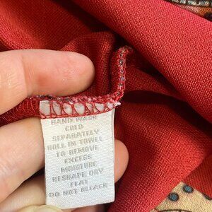 Burgundy Blue Orange Patterned, Empire Waist, Cap Sleeves