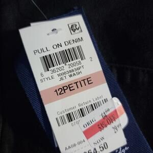 Charter Club reworks your denim style with these petite pull-on jeans, designed with a tummy-control panel to help flatter and pretty velvet trim at each side seam. Mid rise Designed to fit and flatter 5'4" and under frame Pull-on styling Velvet trim at side seams; tummy-control panel Shell: cotton/viscose/polyester/spandex; trim: polyester Machine washable Imported Web ID: 6925809Size: Womens 12P Condition: New
