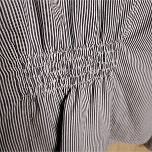 Charter Club Petite women’s blue white pinstriped lightweight blazer Medium. Good condition. Measurements are: 24” sleeve, 22 ½" from shoulder to hem, and 18 ½" from armpit to armpit.