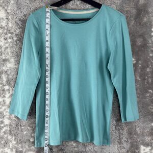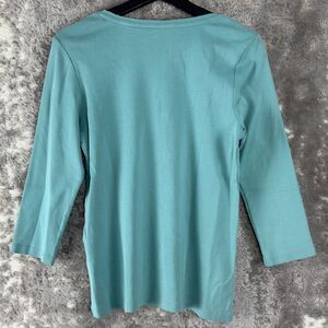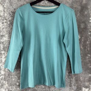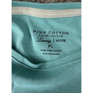 Charter Club Petites Size PL Casual Pima Cotton Round Neck Top Blue 3/4 Sleeve