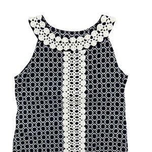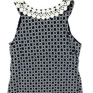 Charter Club Petites Sleeveless Dress Blue White Shift Crochet PL