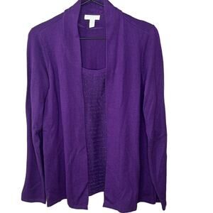 Charter Club Petites Womens PM Cardigan Blouse Combo Purple Metallic Weave