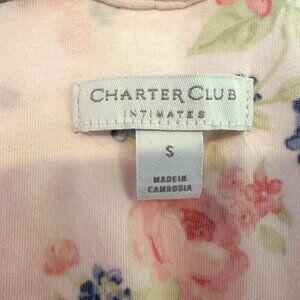 Lightweight floral robe in soft cotton by Charter Club. Features a tie waist, shawl collar, and romantic pastel print—perfect for lounging or gifting.