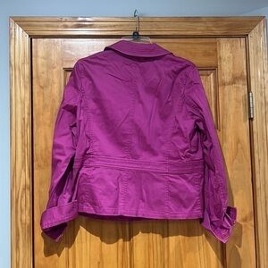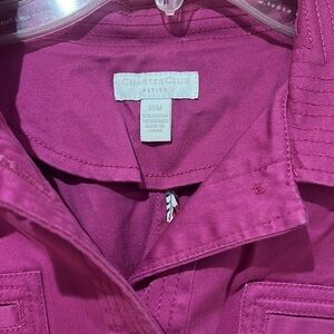 This Charter Club petite jacket features front buttons and a collar in a beautiful pink color. It is in excellent used condition. Women’s size medium petite.