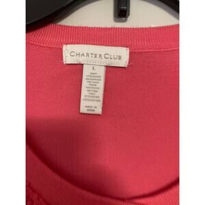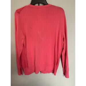 Woman's Large Charter Club Pink Lace-Front Cardigan Sweater Floral Button up.
