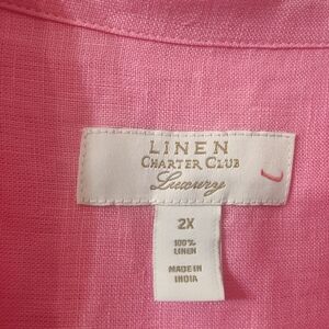 Charter Club Pink Luxury Linen Button Down Top Size 2X