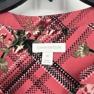This Charter Club blouse showcases a relaxed fit with charming ruffled accents, designed in a delicate pink shade. The long sleeves and airy fabric provide a graceful and comfortable wear, perfect for any occasion. Its flowing silhouette adds a touch of elegance to your ensemble.